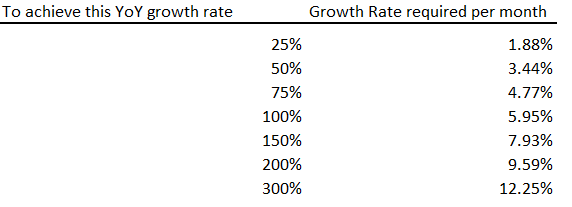 If you are below 6% MoM growth or below ~100% YoY growth, it’s time to go back to the drawing board to see where things can be improved.