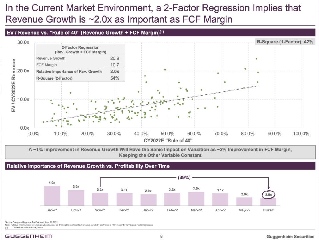 Well, one data point comes from Guggenheim Securities. This puts the relative importance of Revenue Growth towards Valuations at 2x when compared to FCF margin growth.